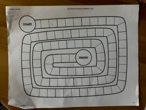 - Player movement. We originally decided (last week) that the problem cards would determine how players would move on the board. Each player would get to choose the problem level they wanted (by picking a card) and, if they got the problem on the card correct, they would move that number of spaces. Well, it doesn’t take long for the students to squash this idea. Instead, players will roll a die to move. The problem levels will be scattered randomly all over the board. Whatever level a player/team lands on, they pick up that card and solve the problem. We agree that this is fairer, more equitable, and more balanced.