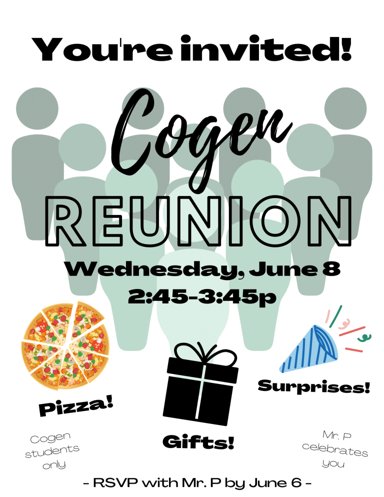After my last cogen on May 19, it didn’t feel right to onboard another cohort. There were just four weeks remaining in school. At the same time, it seemed unnatural to finish there. Thus, right after May 19, I began planning an end-of-year cogen reunion. I wanted to bring back all the cogen students from the entire year for one last cogen. Over the course of the year, our half-hour cogens resulted in over 13 hours of talking and generating ideas to improve the class. If for no one else but myself, the reunion was a way to bring closure to this unforgettable experience.