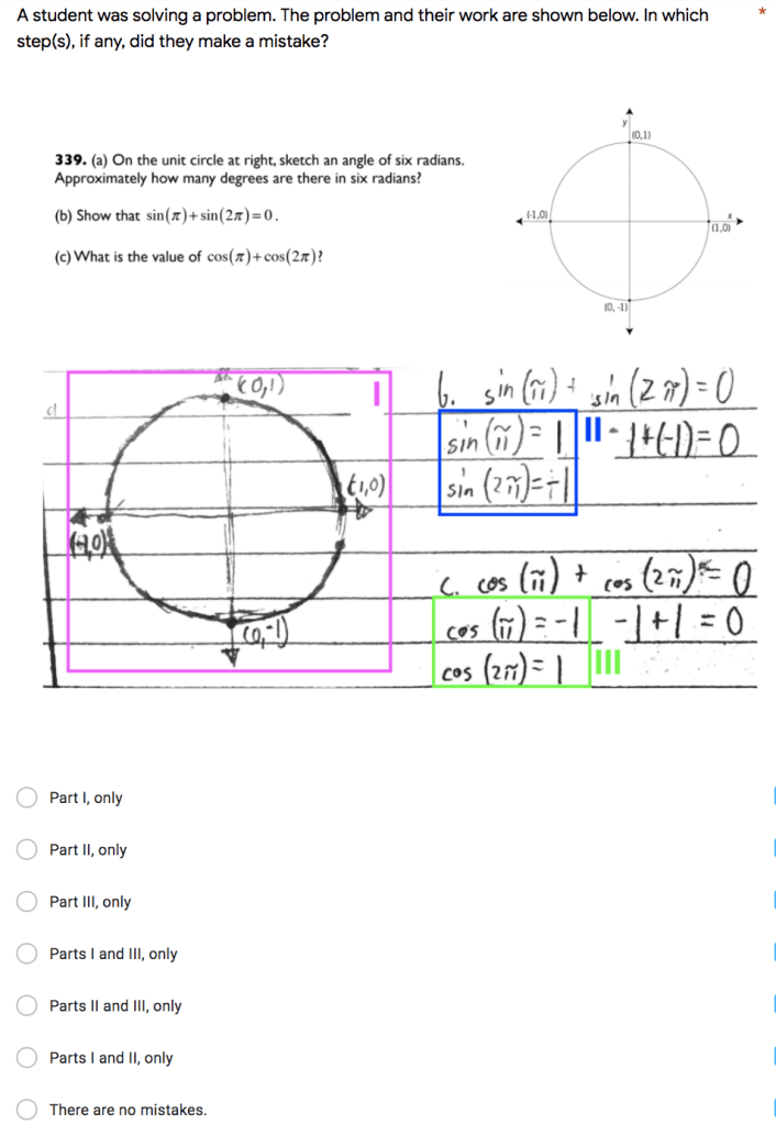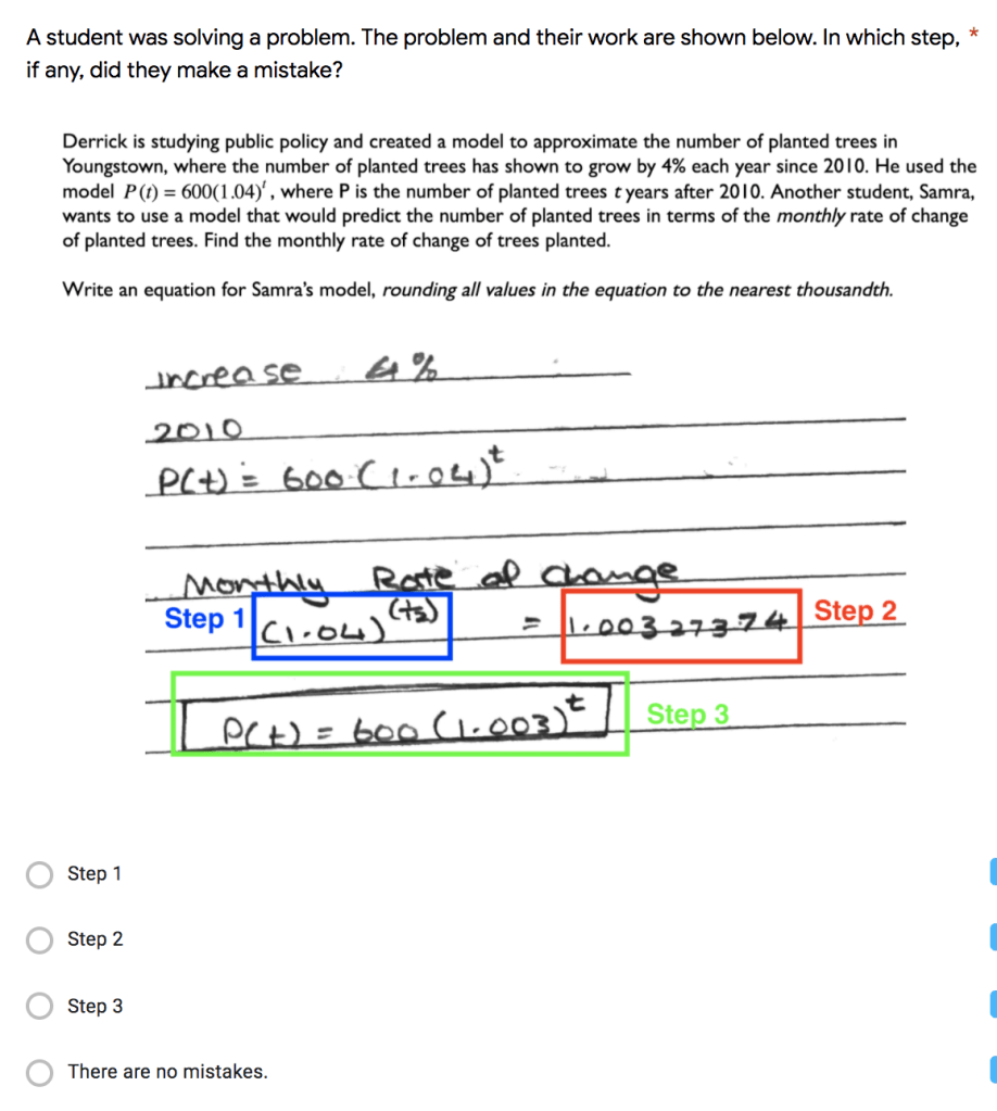 Since I try to leverage student work a lot, I’ve tried to come up with questions that ask students to analyze a piece of student work. Here are two that I conjured up: