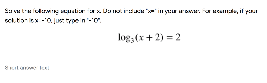 Though I have included a couple free response questions, I’ve been trying to avoid them. Combing through all of their answers to check for equivalent solutions is something I’d rather not do. It defeats the purpose. When I do give a free response question, though, I’m learning how to include in the question what the format of the answer should be. For example: